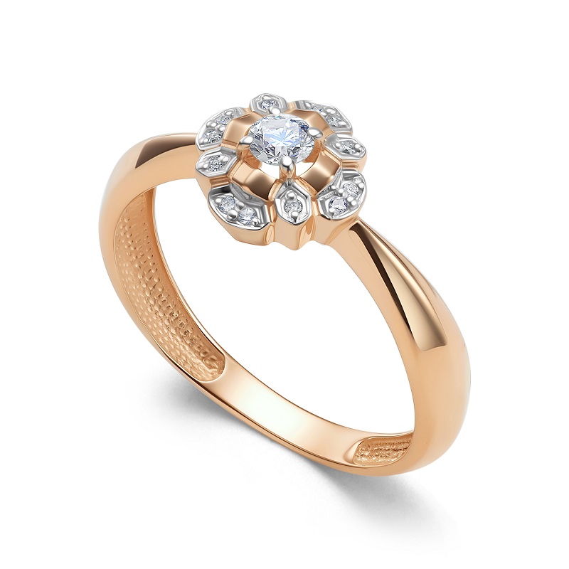 Кольцо из красного золота с фианитами