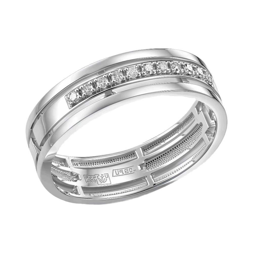 Обручальное кольцо из белого золота с бриллиантом 006819