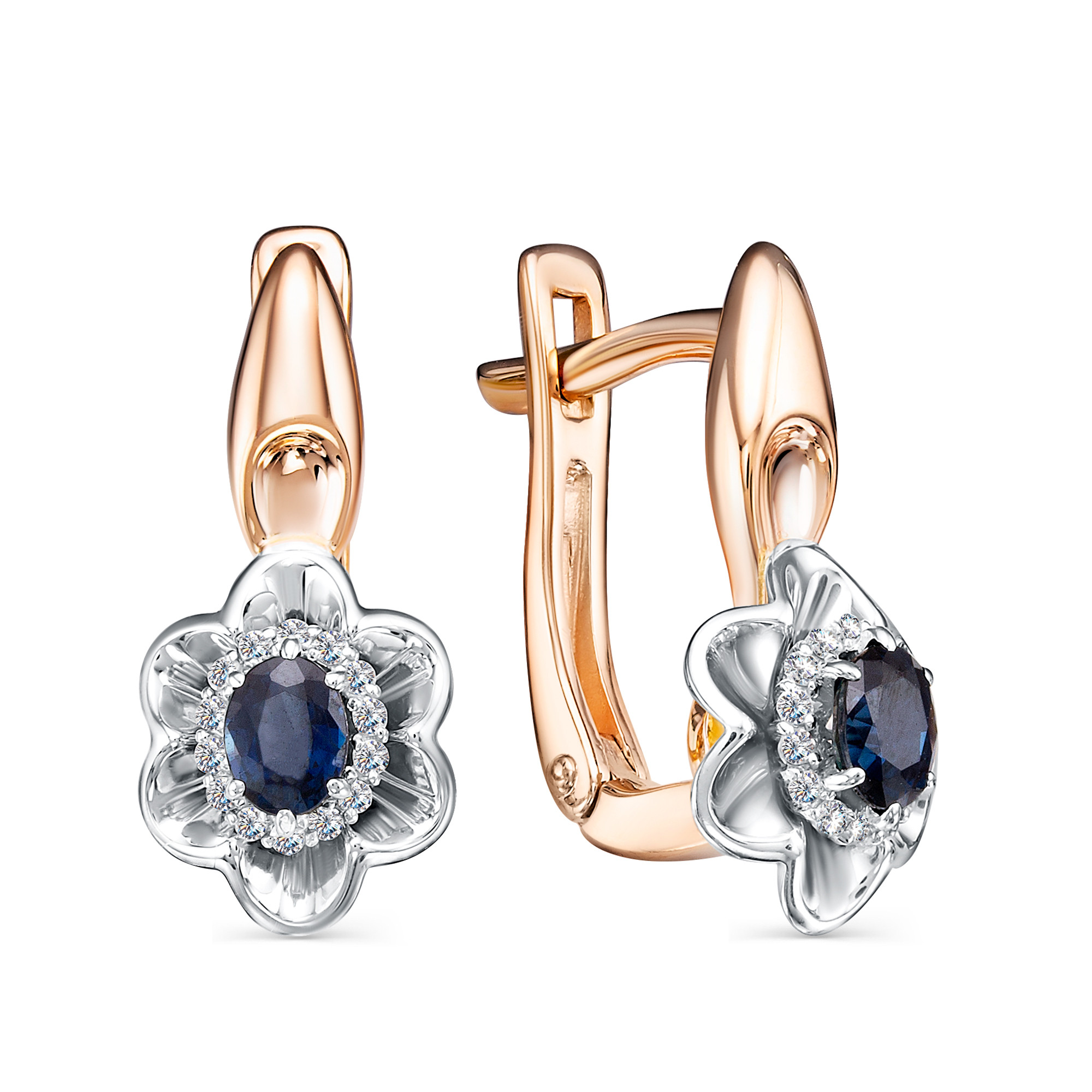 Серьги из красного золота с сапфиром и бриллиантами 010635