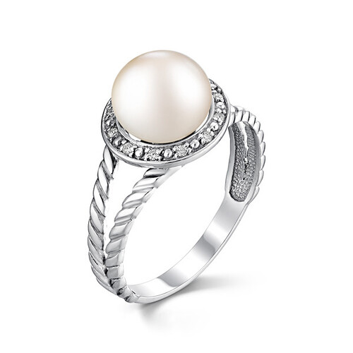 Кольцо из серебра с жемчугом и фианитами 011810