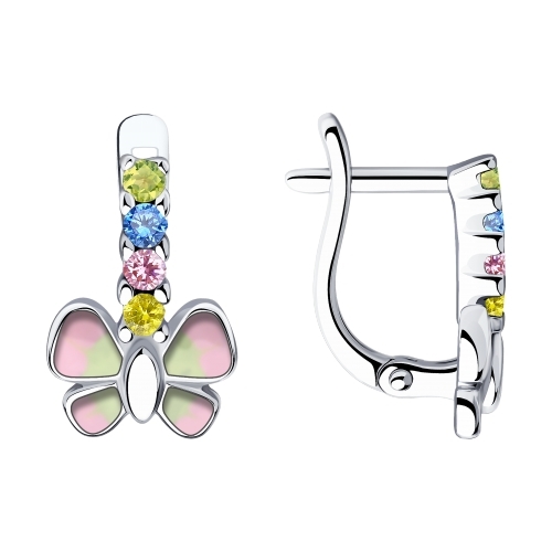 Серьги из серебра с фианитами и эмалью