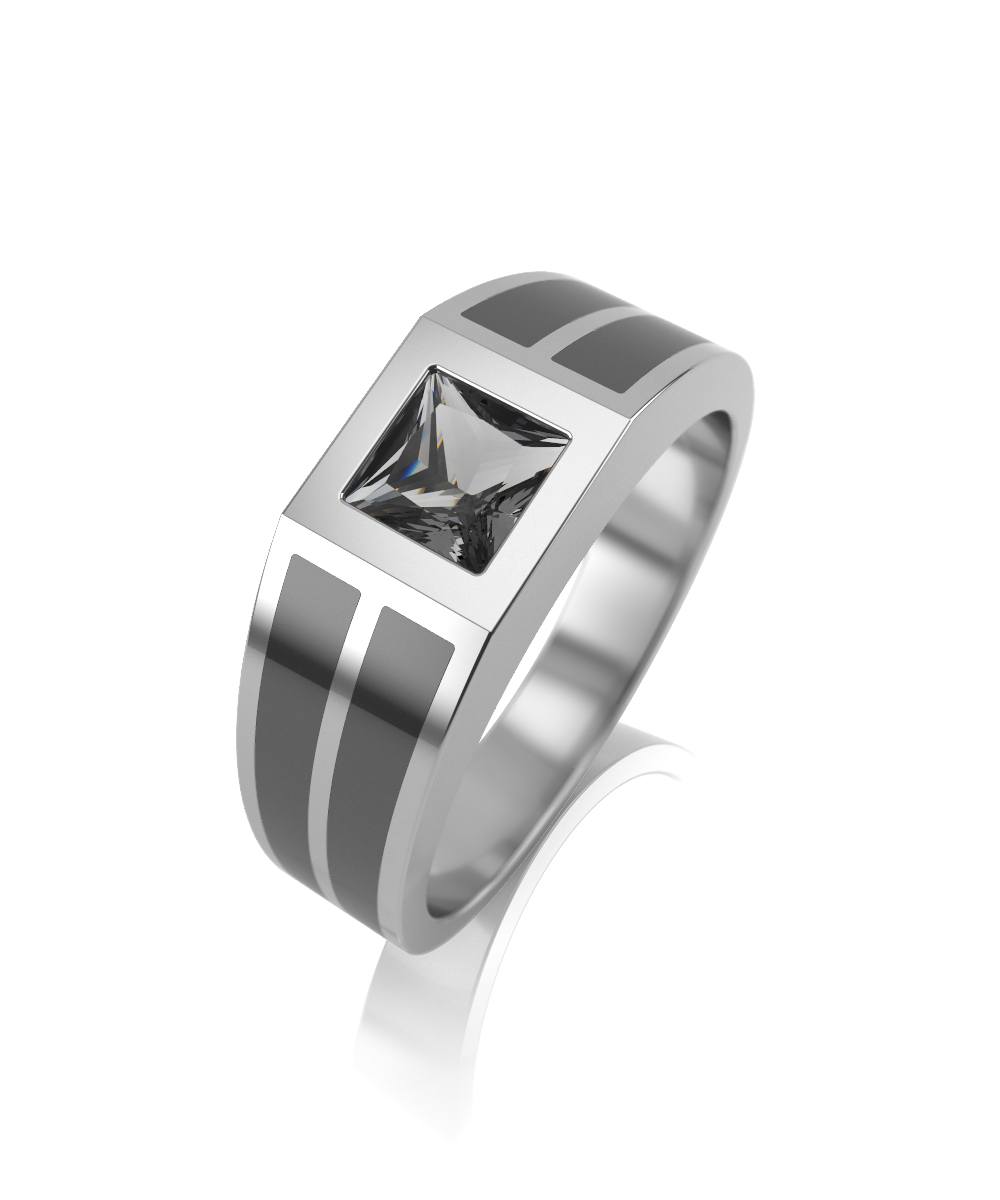 Печатка мужская из серебра с керамикой и фианитом 019518