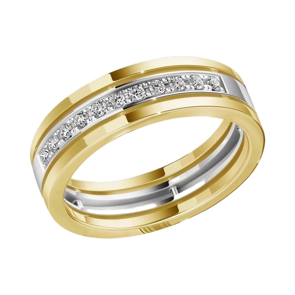 Обручальное кольцо из комбинированного золота с бриллиантами 024419