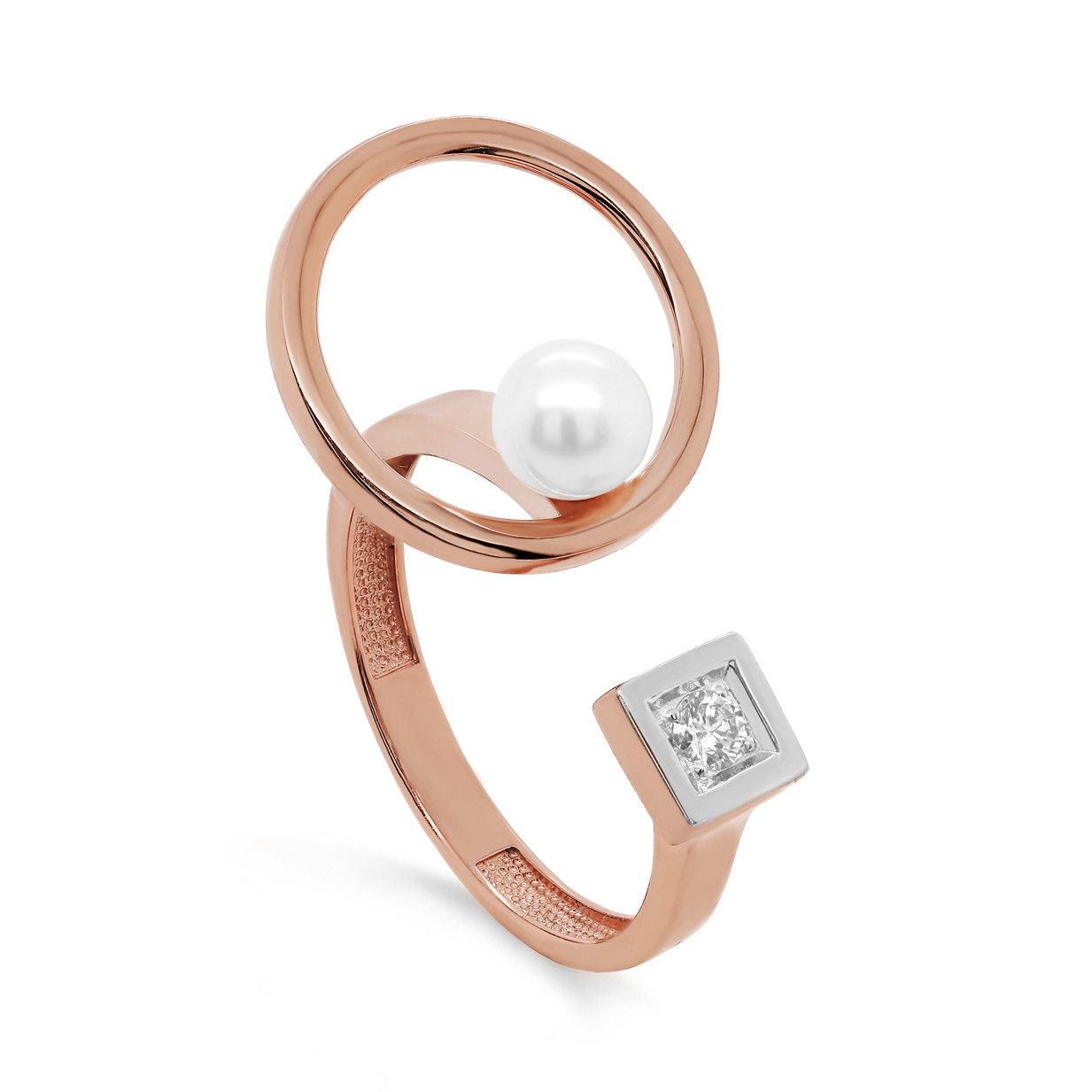 Кольцо из красного золота с жемчугом и бриллиантами 028319