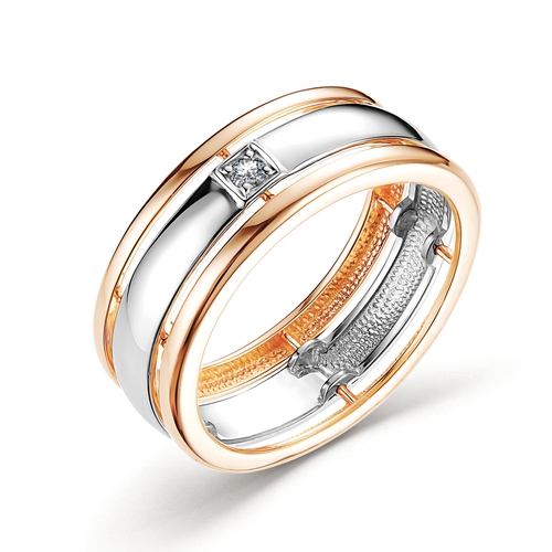 Обручальное кольцо из комбинированного золота с бриллиантом 029096