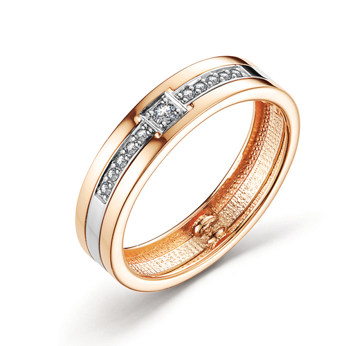 Обручальное кольцо из комбинированного золота с бриллиантами 029098