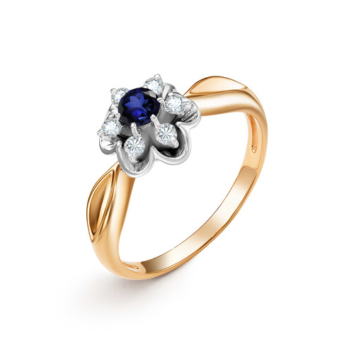 Кольцо из красного золота с сапфиром и бриллиантами 029101