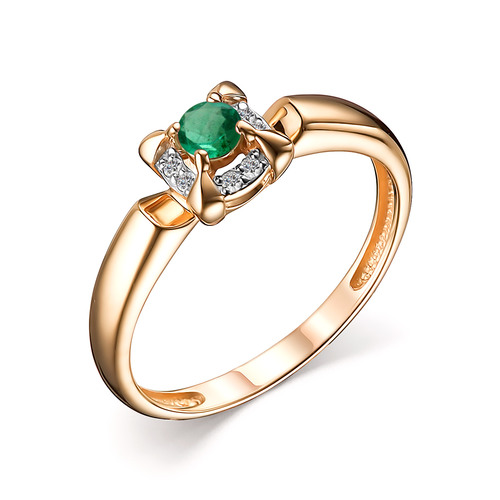 Кольцо из красного золота с изумрудом и бриллиантами 029119