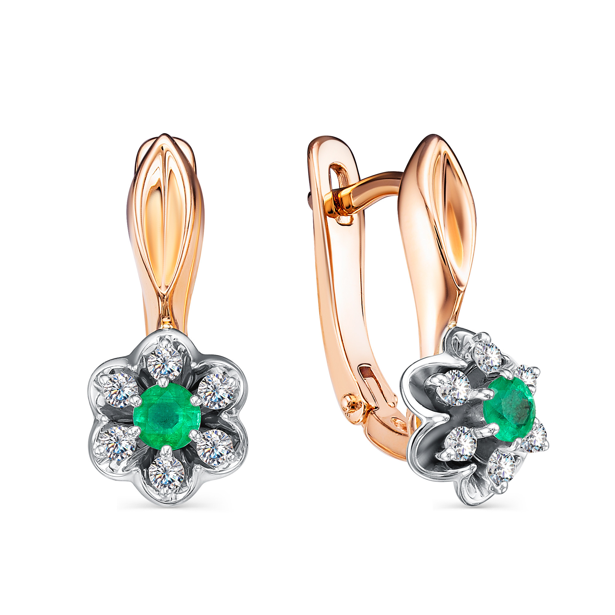 Серьги из красного золота с изумрудами и бриллиантами