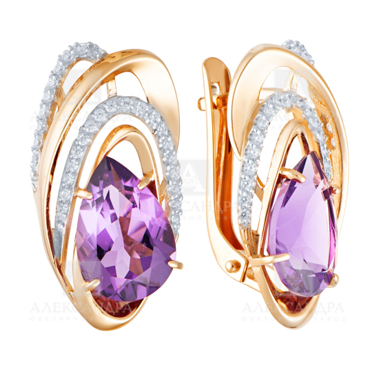 Серьги из красного золота с аметистами и фианитами 030007