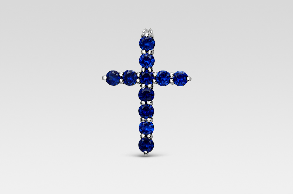 Крест из белого золота с сапфирами
