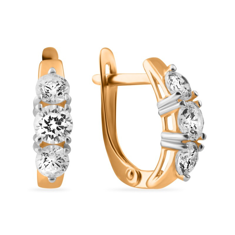 Серьги из комбинированного золота с фианитами