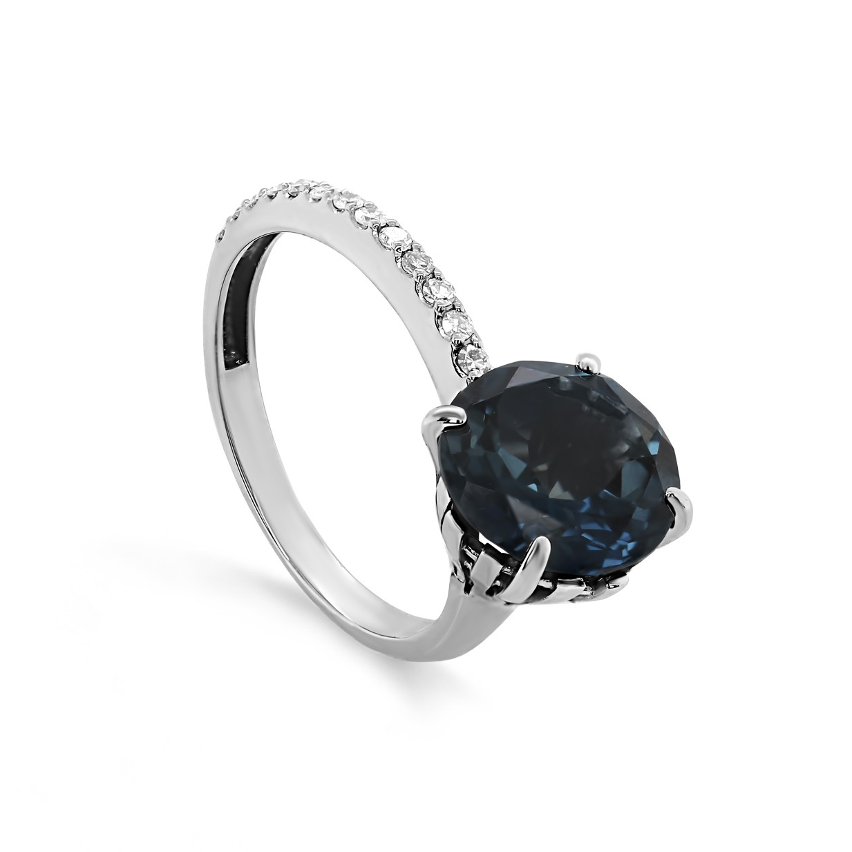 Кольцо из белого золота с бриллиантами и топазом 032548
