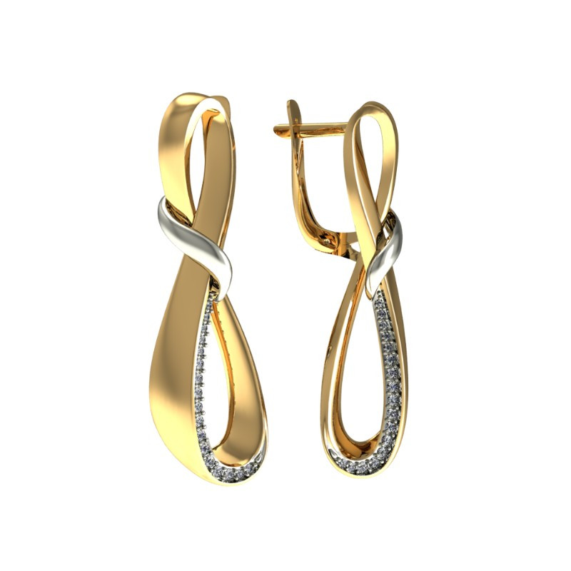 Серьги из желтого золота с фианитами 034037