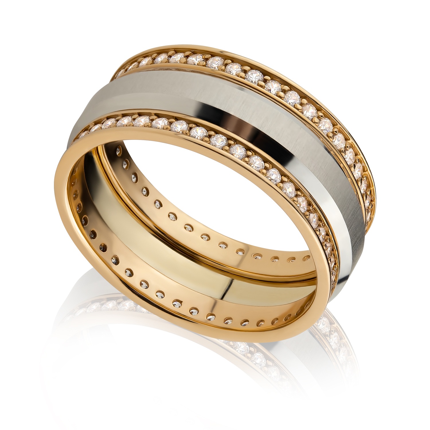 Обручальное кольцо из комбинированного золота с фианитами 034253