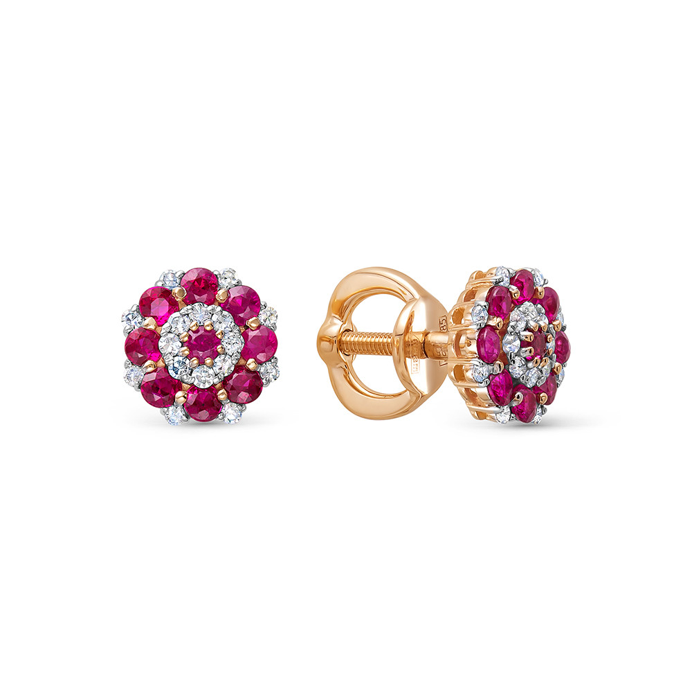 Серьги из красного золота с рубинами и бриллиантами 034280