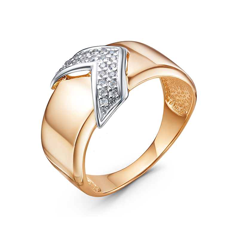 Кольцо из красного золота с фианитами 034445
