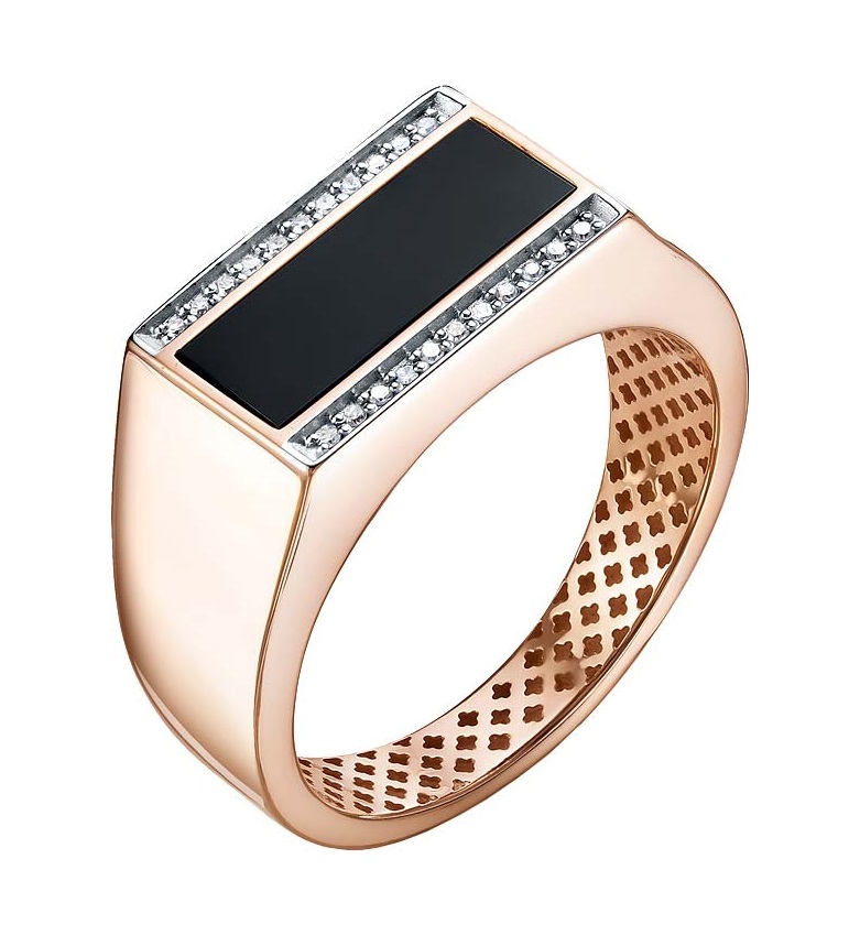 Печатка мужская из красного золота с ониксом и фианитами 034914