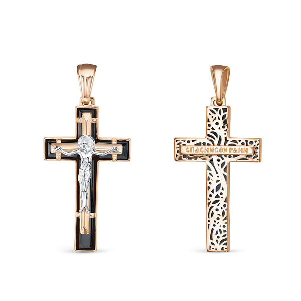 Крест из красного золота с ониксом
