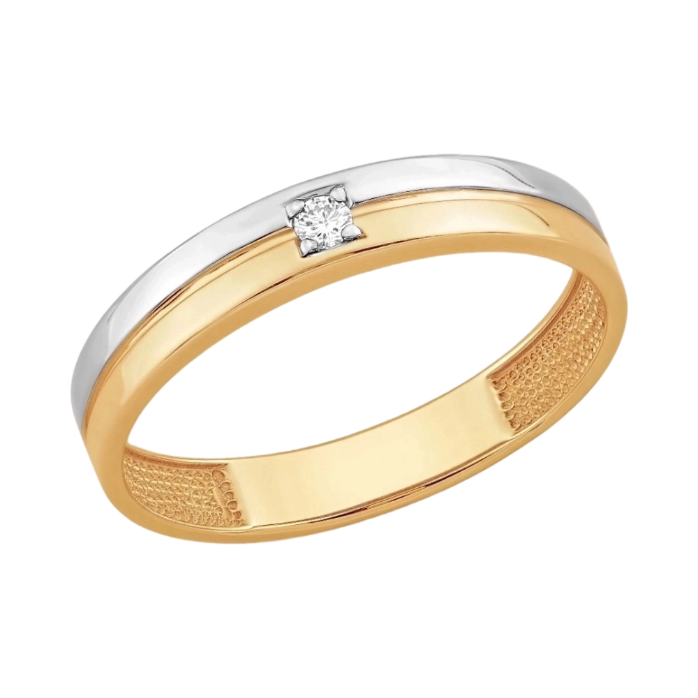 Обручальное кольцо из комбинированного золота с бриллиантом 035243