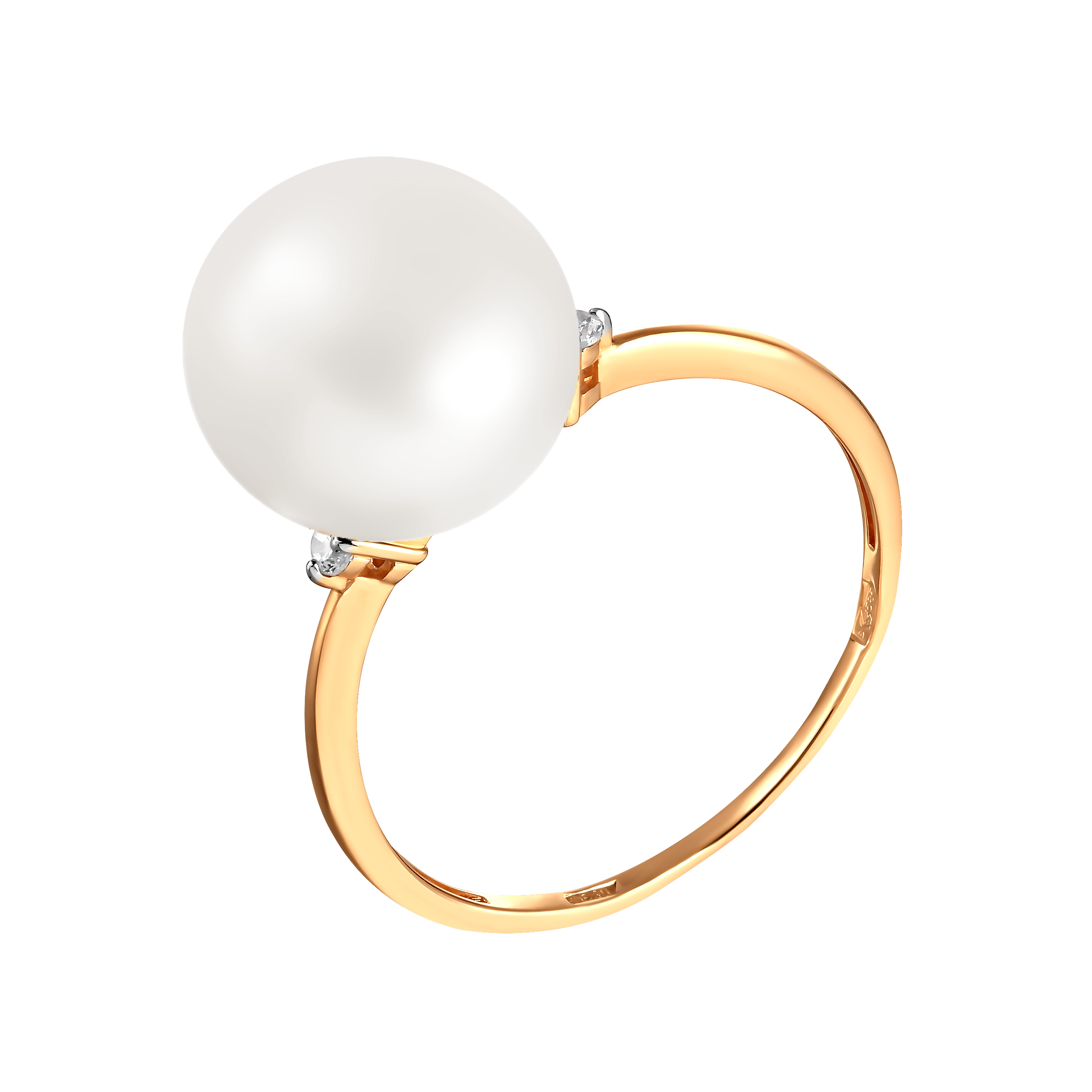 Кольцо из красного золота с жемчугом и фианитами