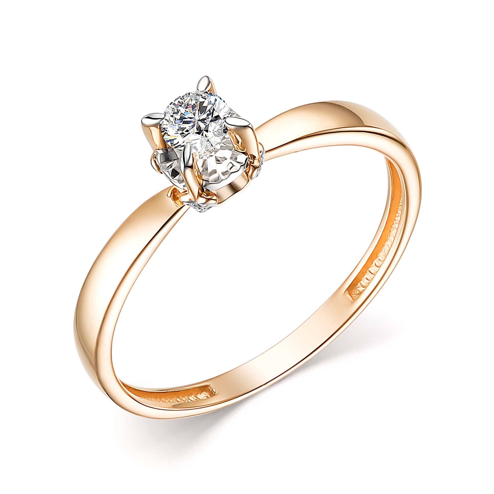 Кольцо помолвочное из красного золота с бриллиантами
