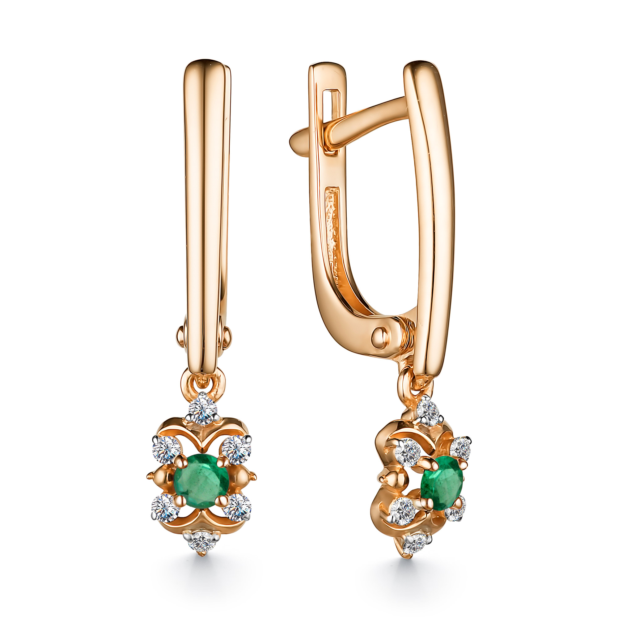 Серьги из красного золота с изумрудами и бриллиантами 042806