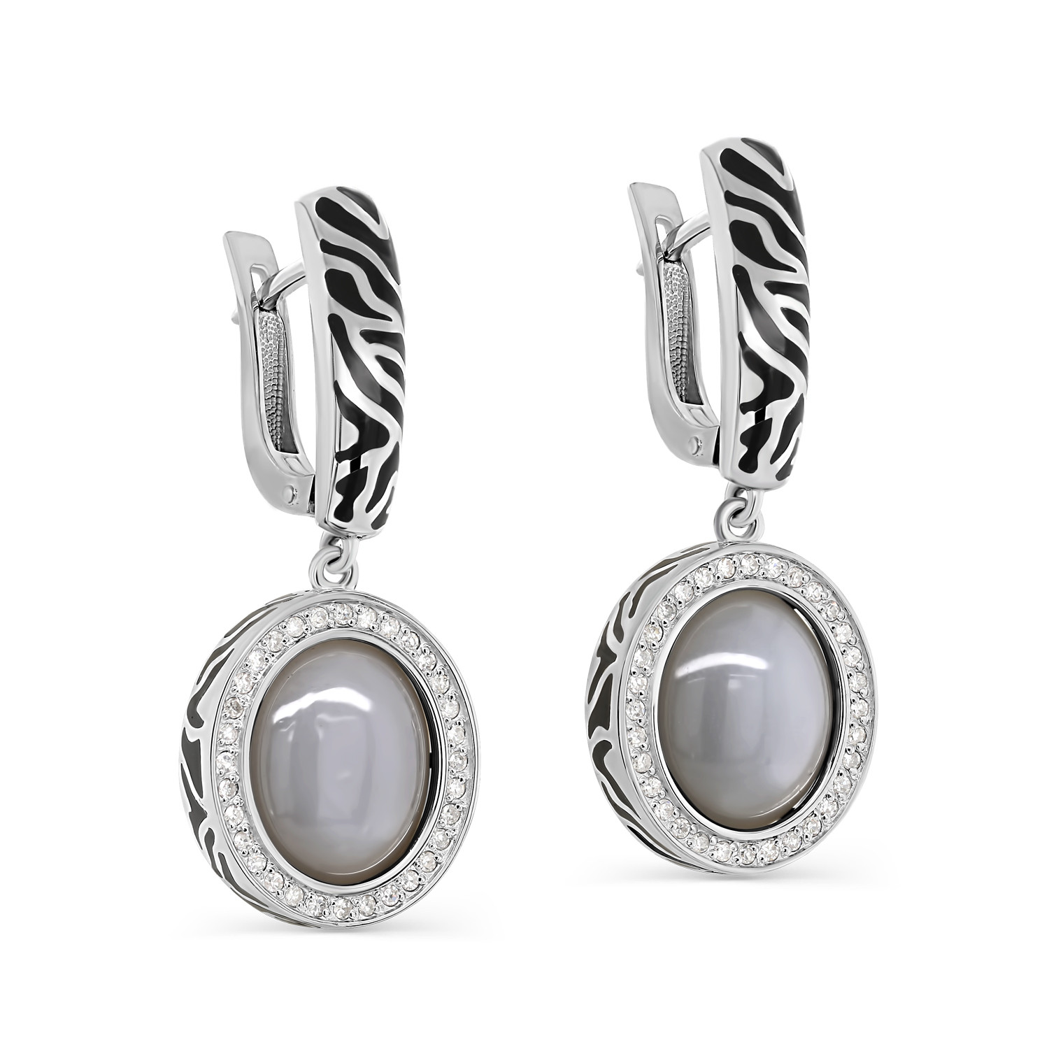 Серьги из белого золота с лунным камнем и бриллиантами 045712