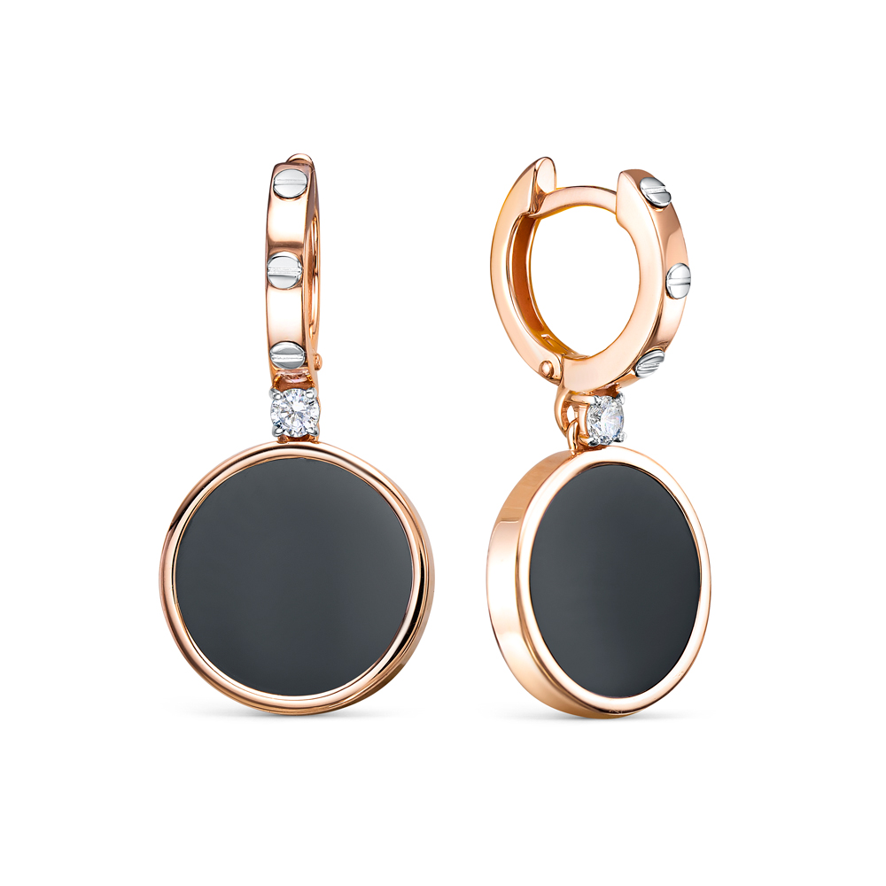 Серьги из красного золота с ониксом и фианитами