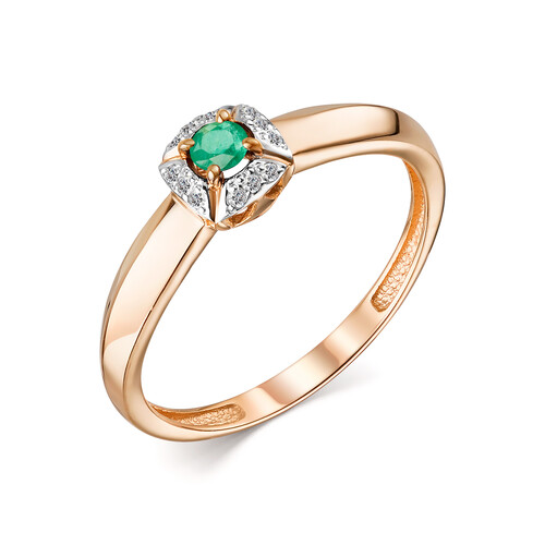 Кольцо из красного золота с изумрудом и бриллиантами 053117