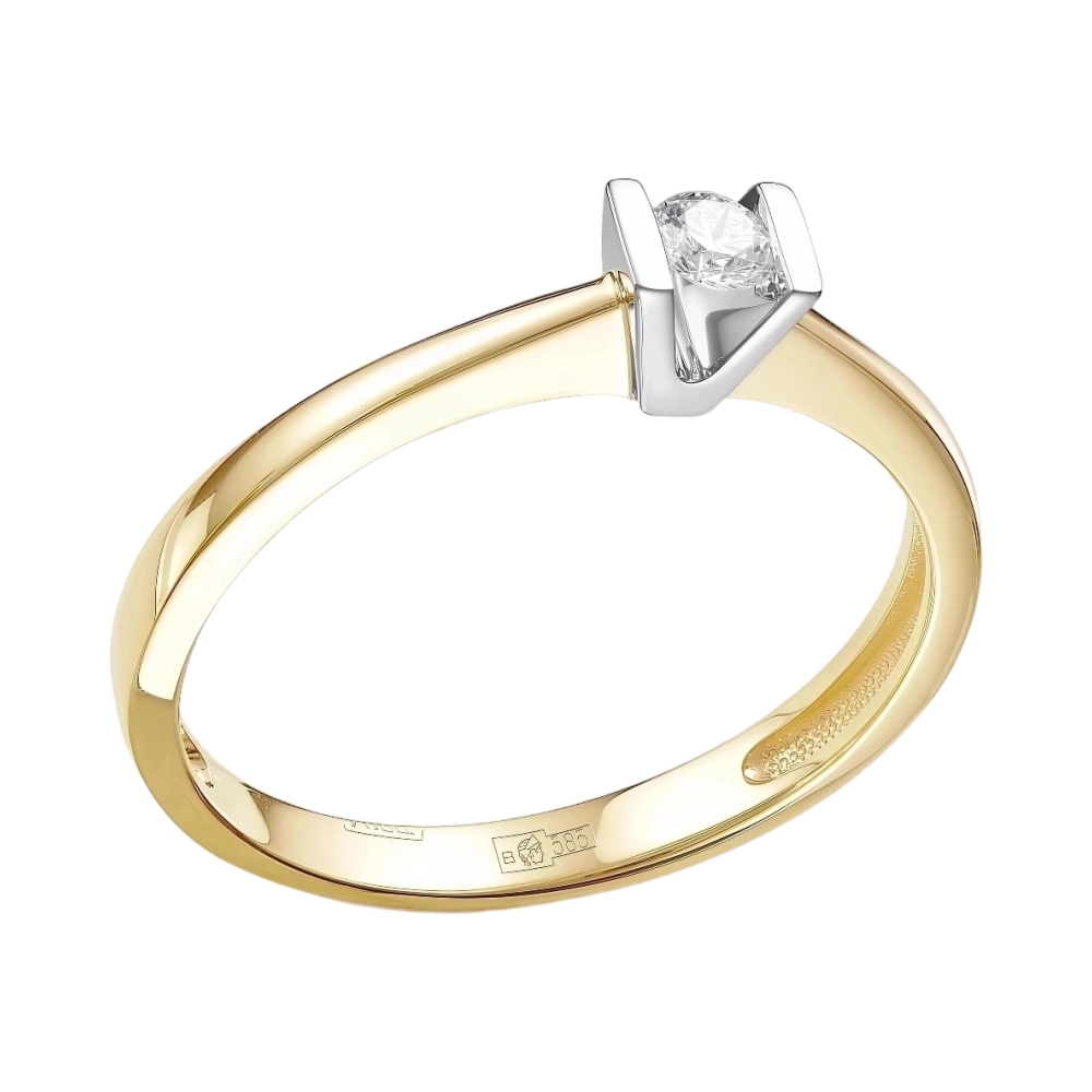 Кольцо помолвочное из комбинированного золота с бриллиантом