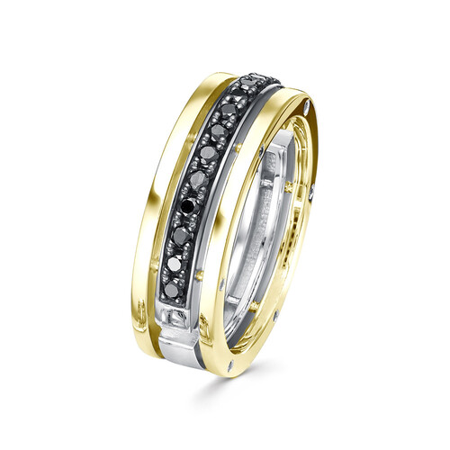 Хит среди обручальных колец в новом ярком исполнении – лимонном золоте с чёрными бриллиантами. Матовое сияние чёрных бриллиантов – для любителей эффектных трендовых украшений. Лимонное золото, с каждым днём приобретающее всё большую популярность, придаёт модели необычный, актуальный вид, а торцевые белые бриллианты довершают образ.