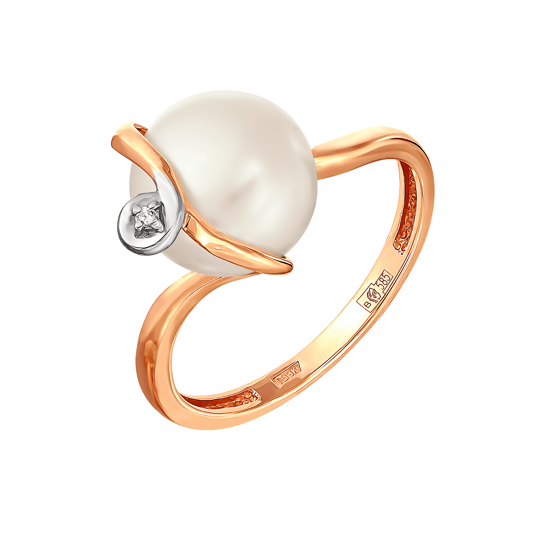 Кольцо из красного золота с жемчугом и фианитами 069155