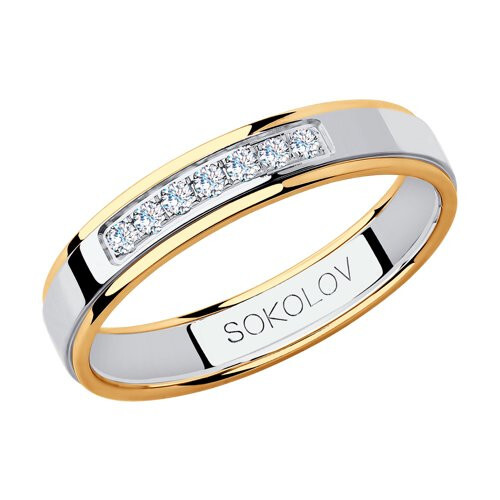 Обручальное кольцо из комбинированного золота с фианитами 069740