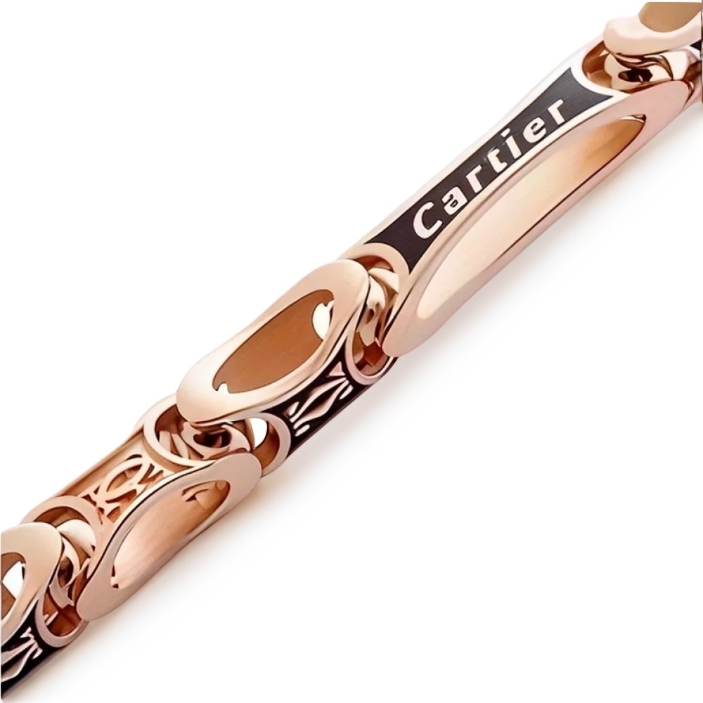 Цепь из красного золота, плетение Картье с эмалью