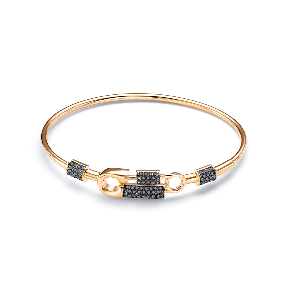 Браслет жёсткий из жёлтого золота с фианитами