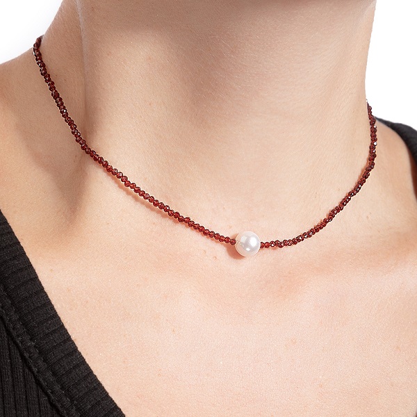Колье из серебра с жемчугом и шпинелью