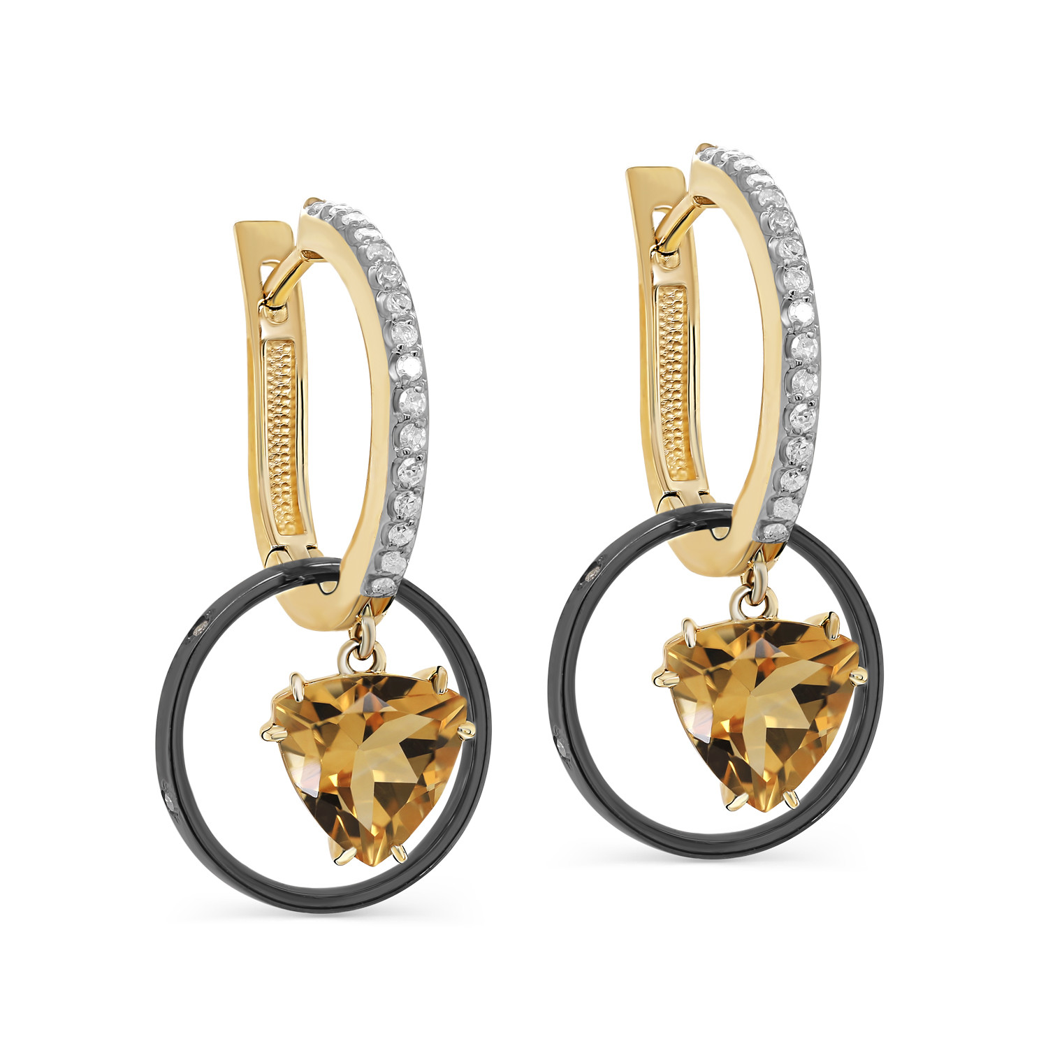 Серьги из жёлтого золота с цитринами и бриллиантами