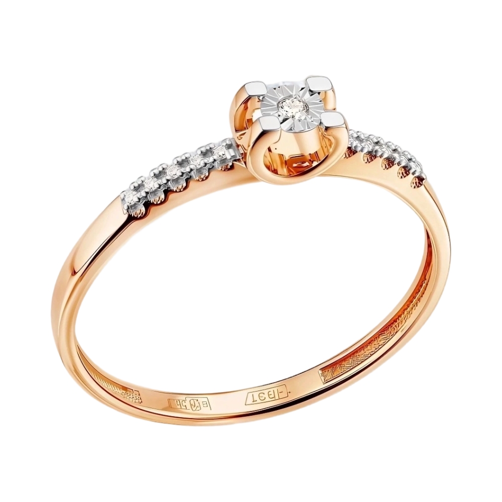 Кольцо помолвочное из красного золота с бриллиантами