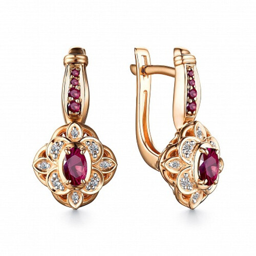 Серьги из красного золота с рубинами и бриллиантами 084787