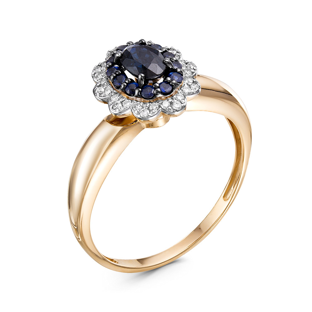 Кольцо из красного золота с сапфиром бриллиантами 086501