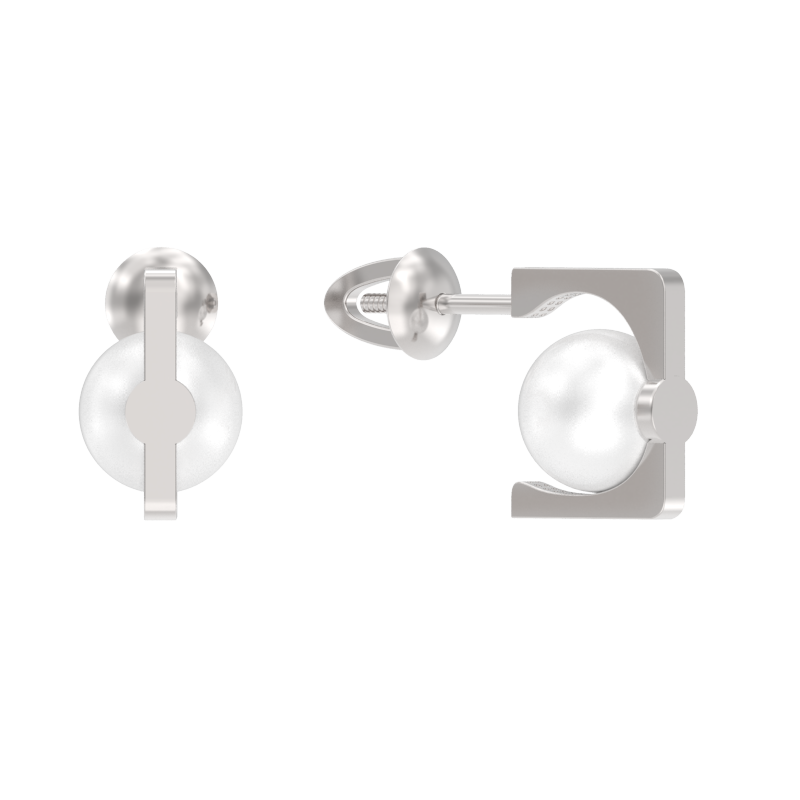 Пуссеты из серебра с жемчугом 095941