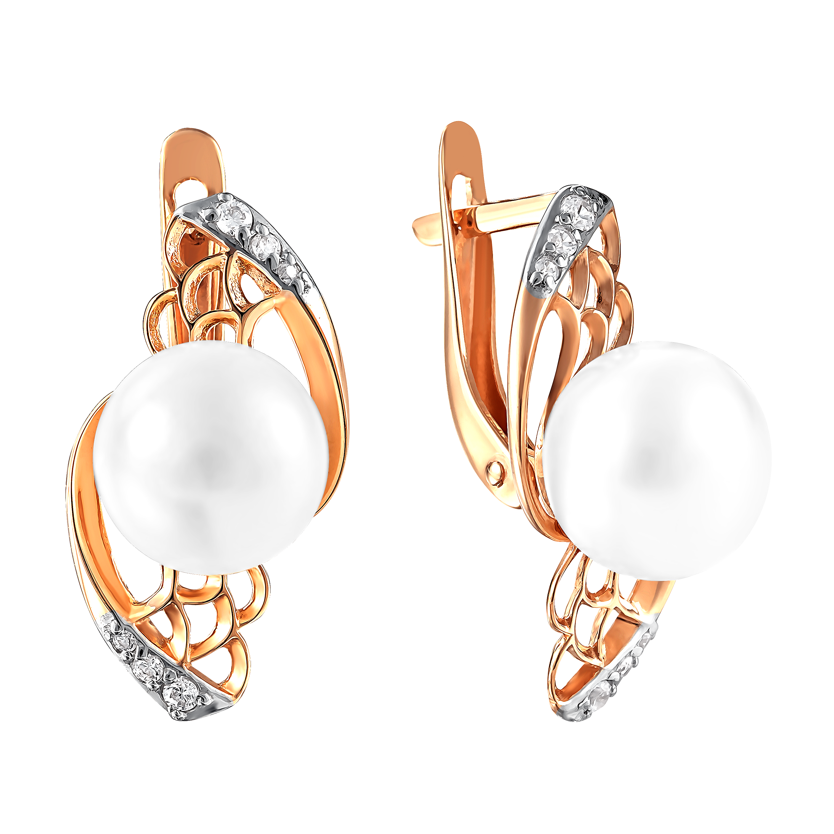 [NAME] => Серьги из красного золота с жемчугом и фианитами