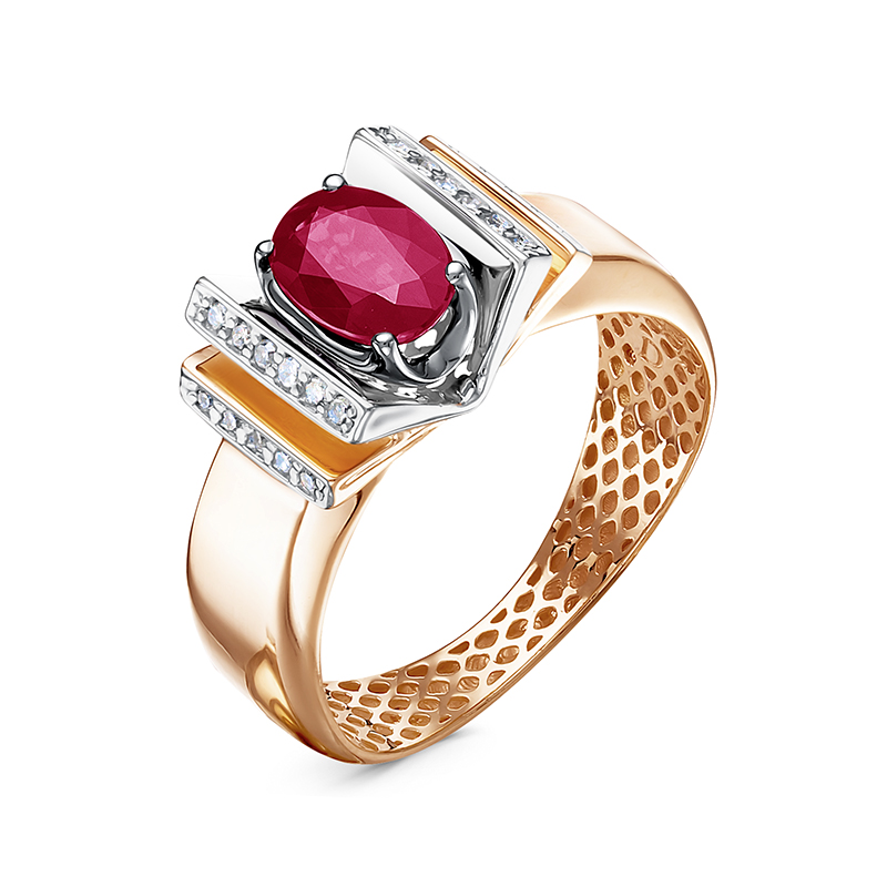 Кольцо из красного золота с рубином и бриллиантами 097184