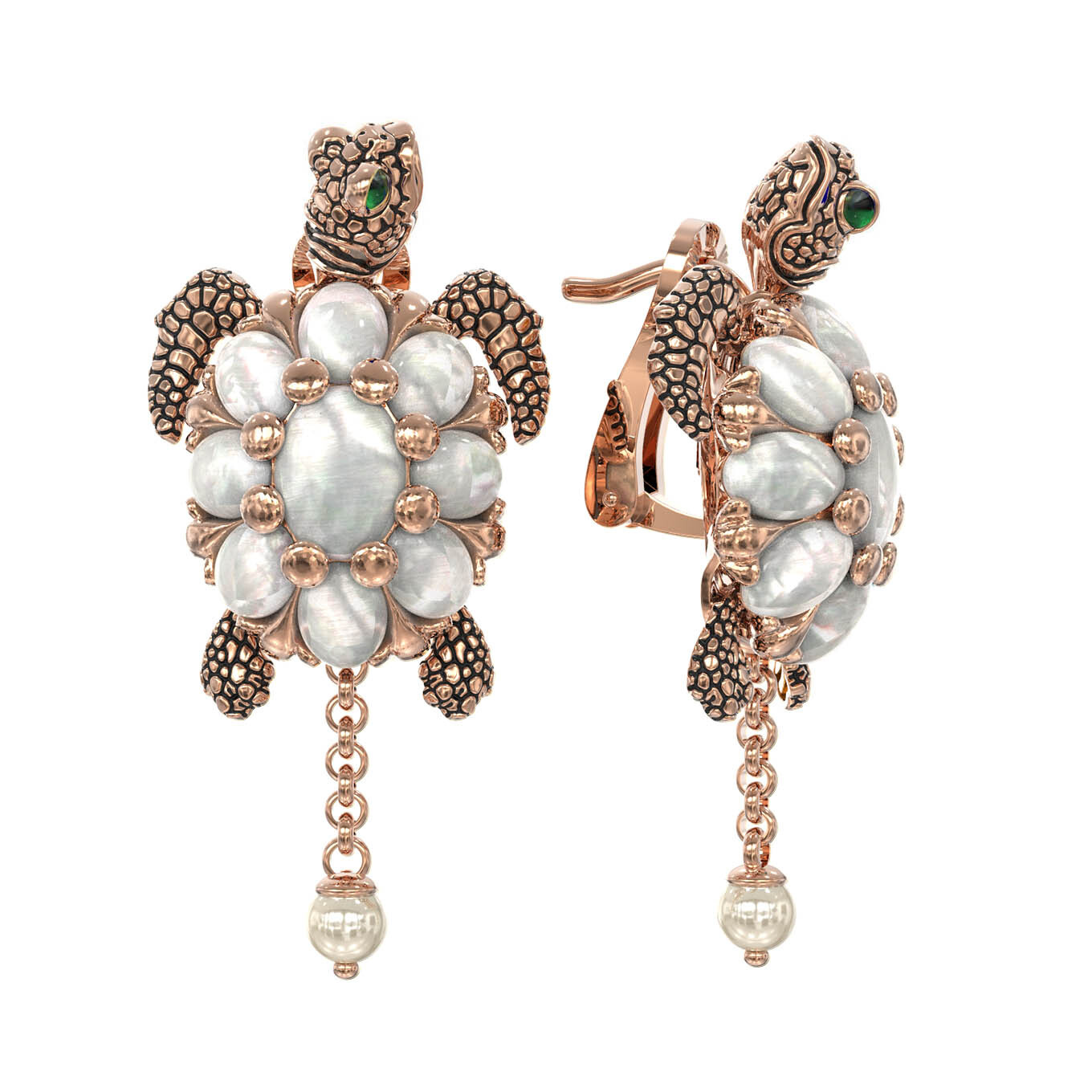 Серьги из красного золота с жемчугом, перламутром и эмалью