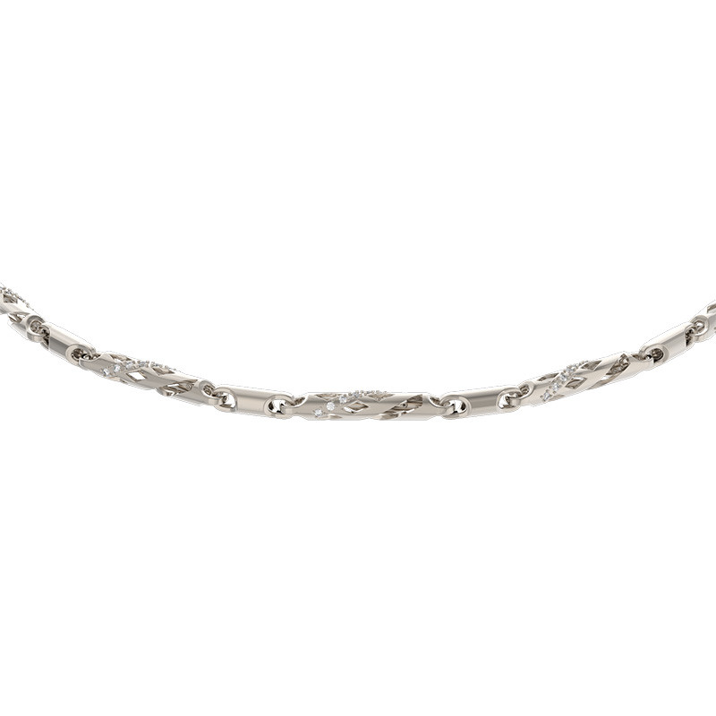 Цепь из белого золота с бриллиантами, фантазийное плетение