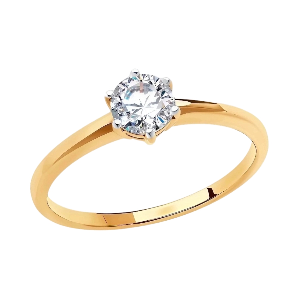Кольцо помолвочное из красного золота с фианитом
