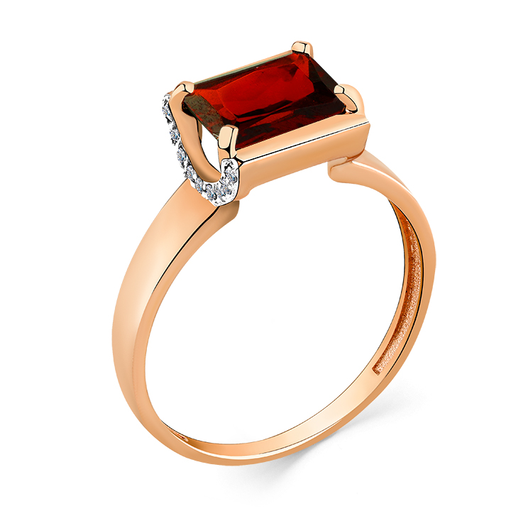 Кольцо из красного золота с гранатом и фианитами