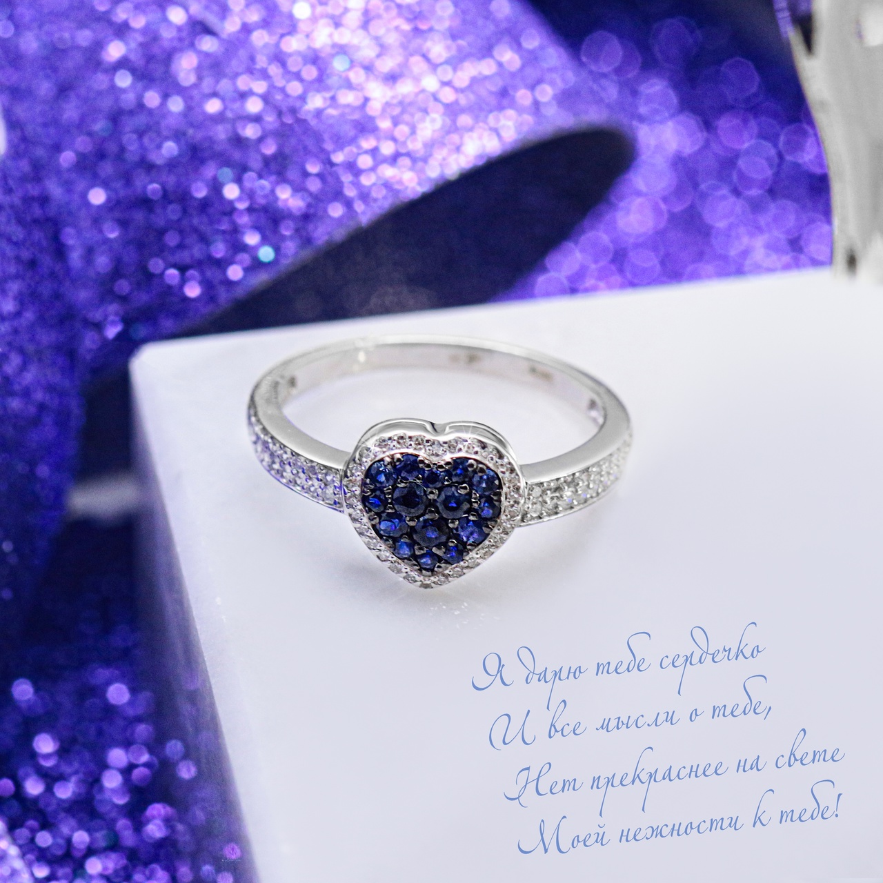Кольцо из белого золота с сапфирами и бриллиантами