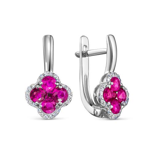 Серьги из белого золота с рубинами и бриллиантами